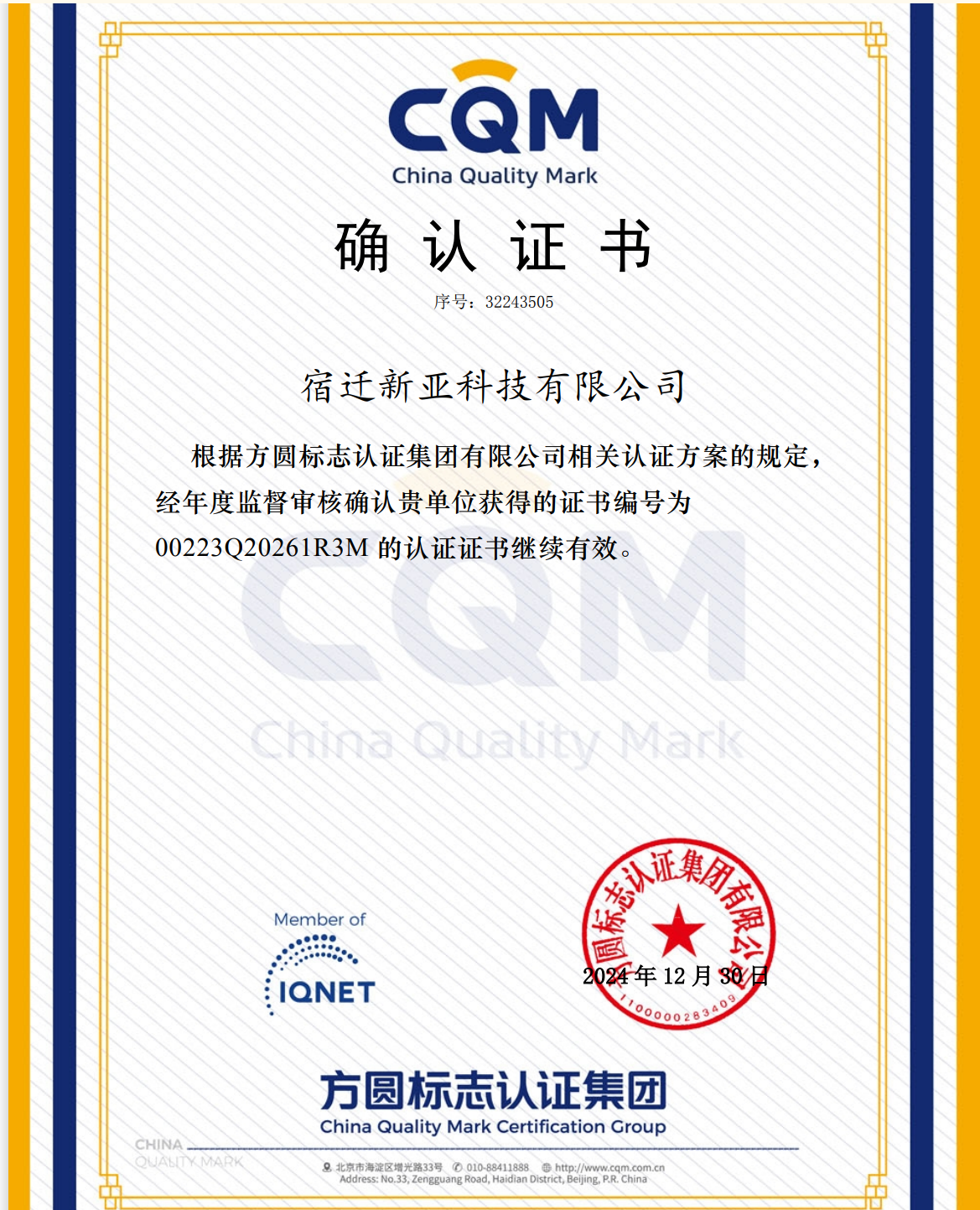 選擇新亞--品質(zhì)保證